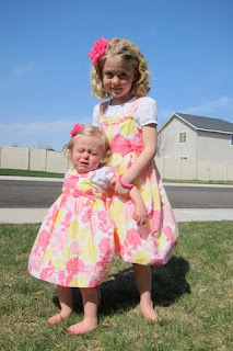 Trying to snap some shots of my cute Easter girls. I was so excited that Sophie's hair was long enough for me to take the curling iron to it and I gave her ringlets